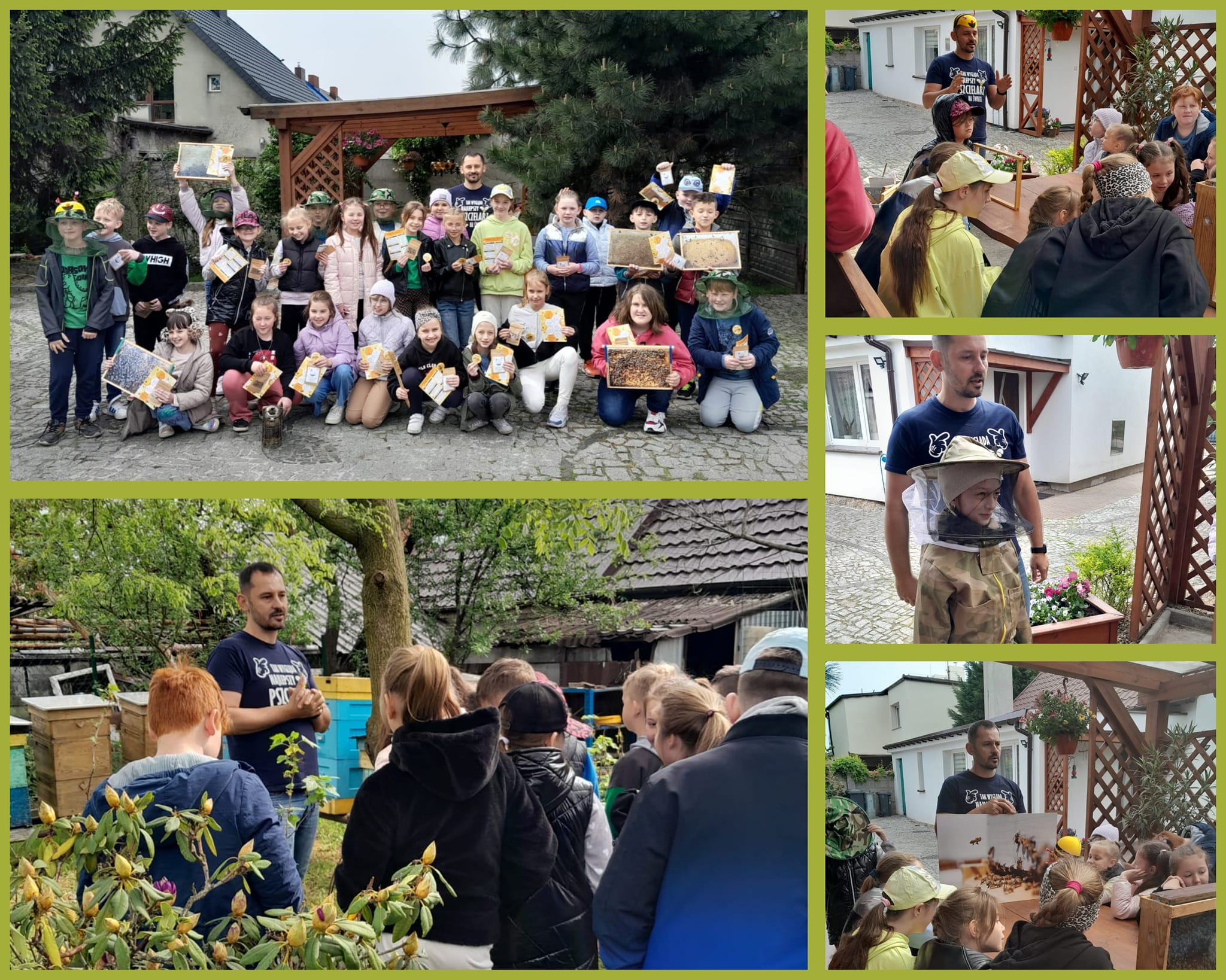 17 maja klasy IIIb i IIIe wybrały się z wizytą do pasieki.Jej właściciel - pan Piotr - opowiedział dzieciom o pracy pszczelarza i znaczeniu pszczół w przyrodzie.Uczniowie mogli również obejrzeć ramki pszczelarskie oraz akcesoria pszczelarza. Dziękujemy Panu Piotrowi Świdzińskiemu za ciekawą lekcję przyrody.
