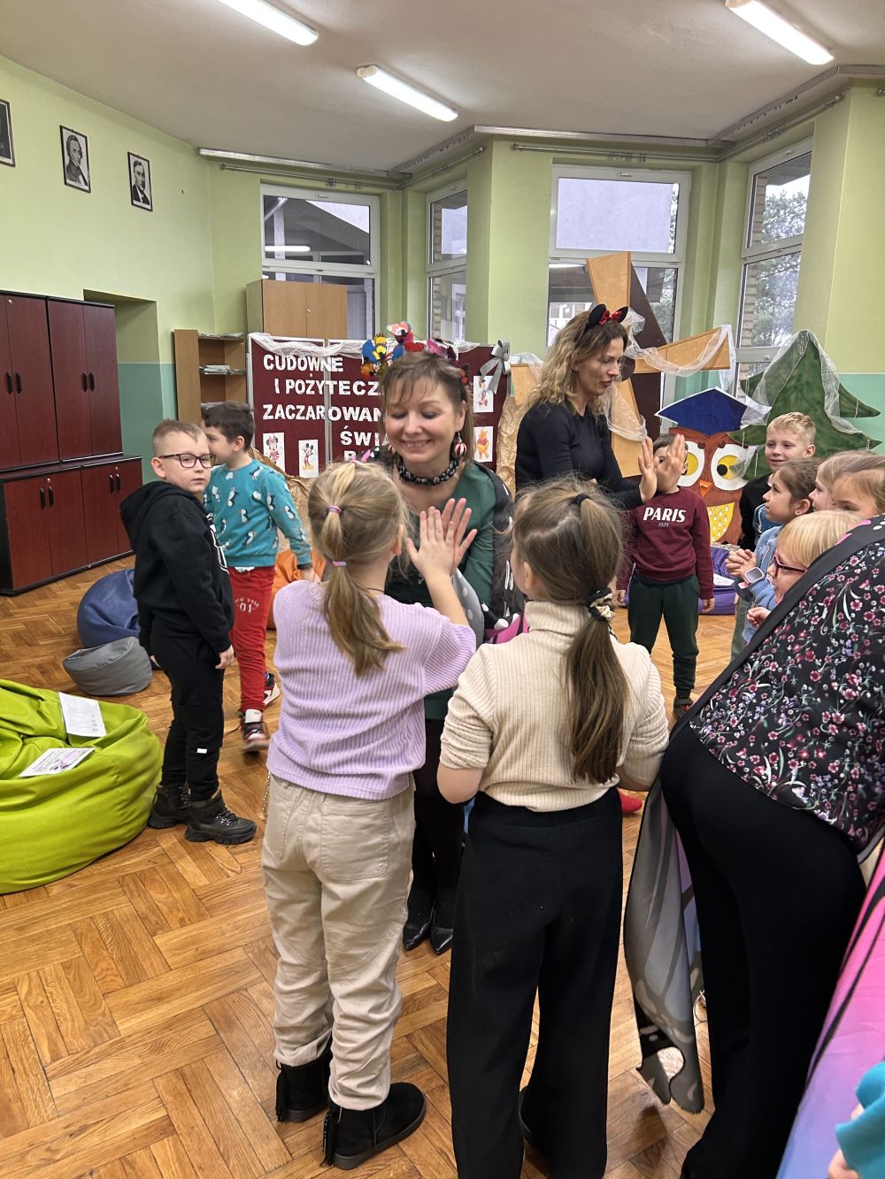 W poniedziałek 16 grudnia br. gościliśmy w naszej szkole uczniów klasy I ze Szkoły Podstawowej im. por. Stefana Rysmanna w Bronikowie. Uczniowie zostali zaproszeni w ramach międzyszkolnego projektu bajkoterapeutycznego pod hasłem „Cudowne i pożyteczne – zaczarowany świat bajek”.