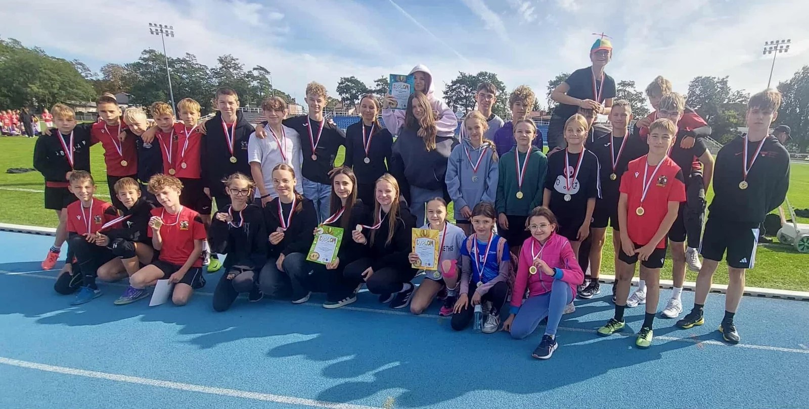 W piątek 26 września na kościańskim stadionie odbyły się Mistrzostwa Powiatu w sztafetach lekkoatletycznych. Znakomicie spisały się wszystkie 7 sztafet reprezentujących naszą szkołę. 4 złote medale, 2 srebrne i 1 brązowy to dorobek naszej reprezentacji.