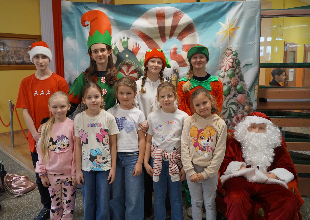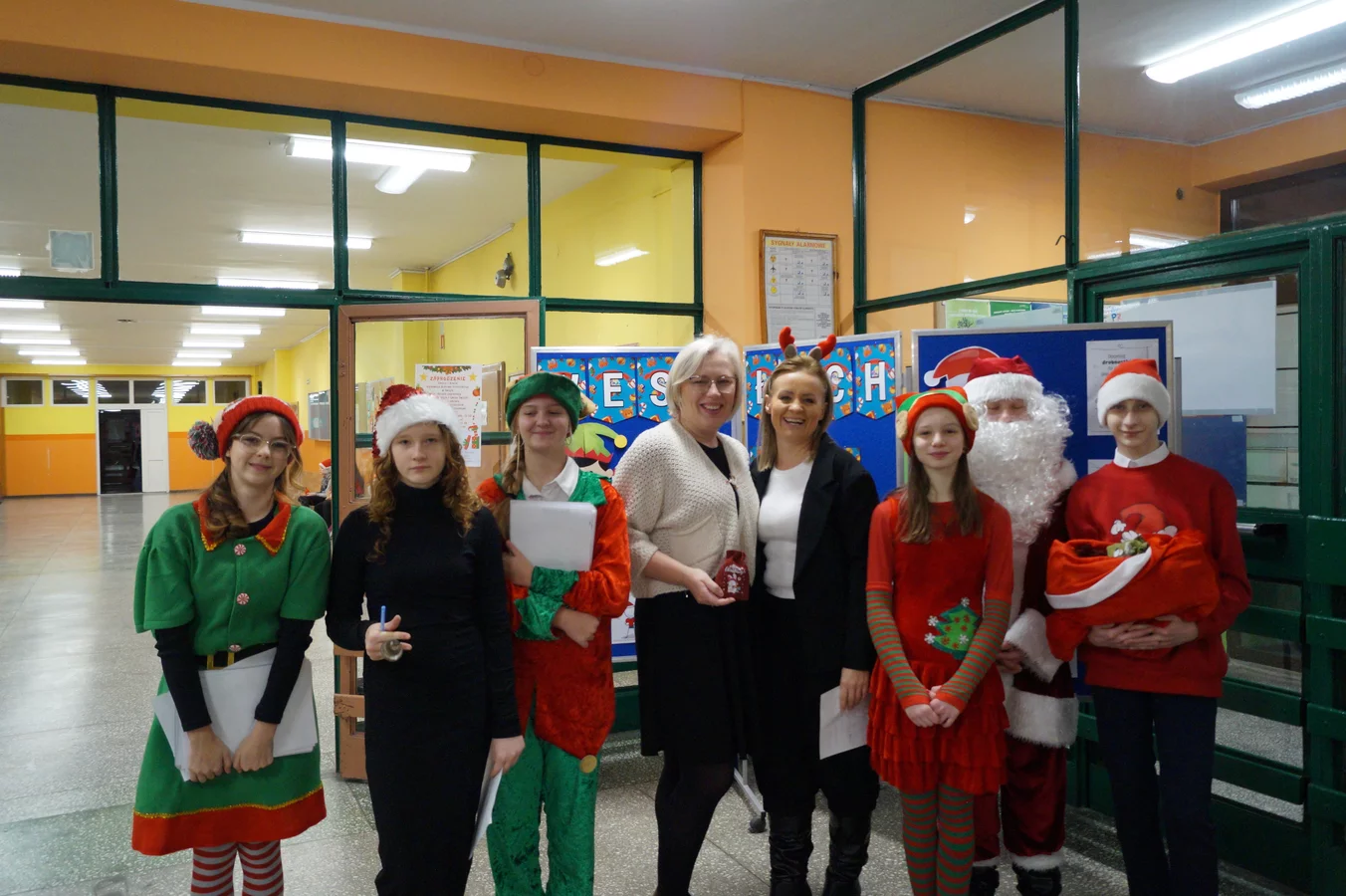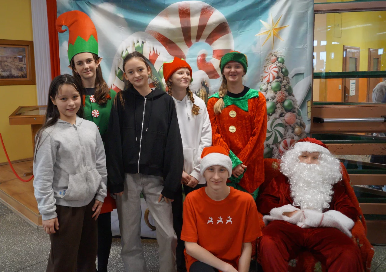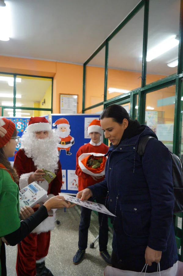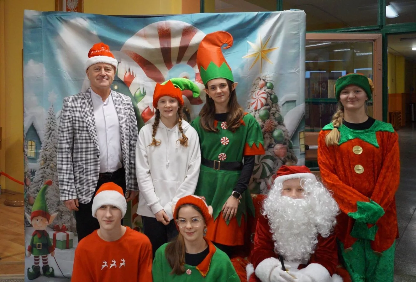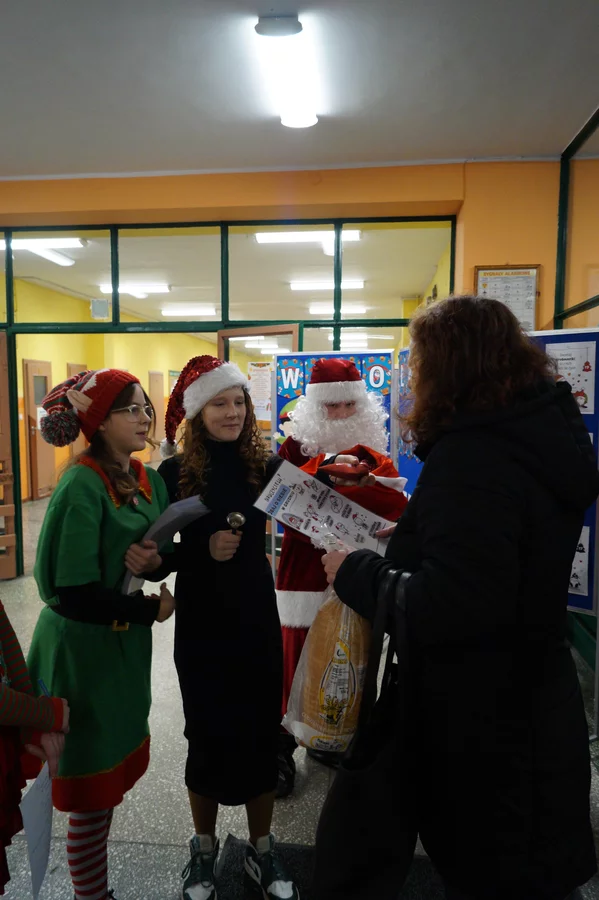 Z kolędami w tle, jeszcze przed wejściem do szkoły, witali nas przedstawiciele SU - świąteczne elfy oraz sam Mikołaj. Każdy, kto przekraczał próg szkoły, mógł poczuć wyjątkowy klimat i uśmiechnąć się na myśl o miłej niespodziance.