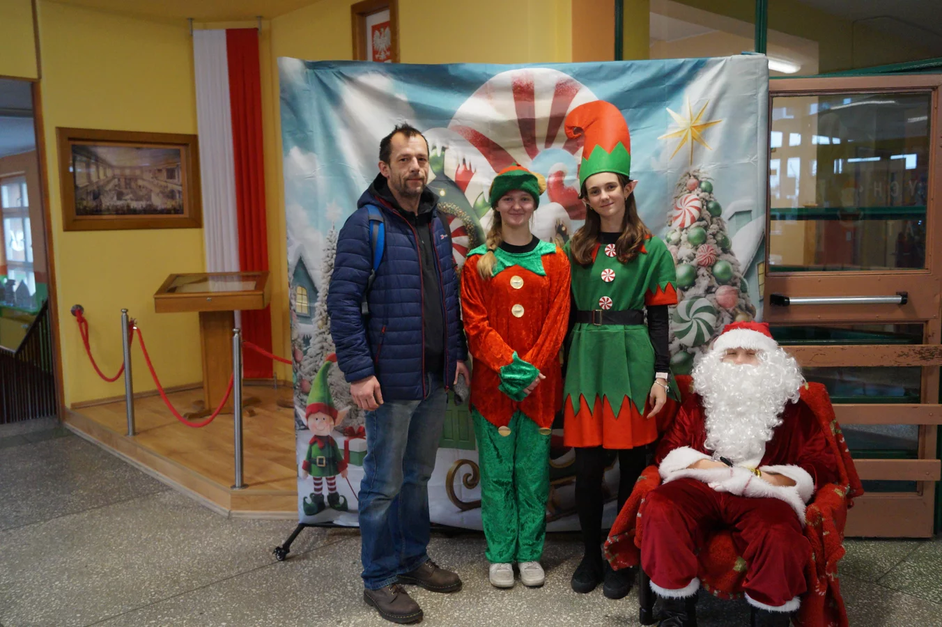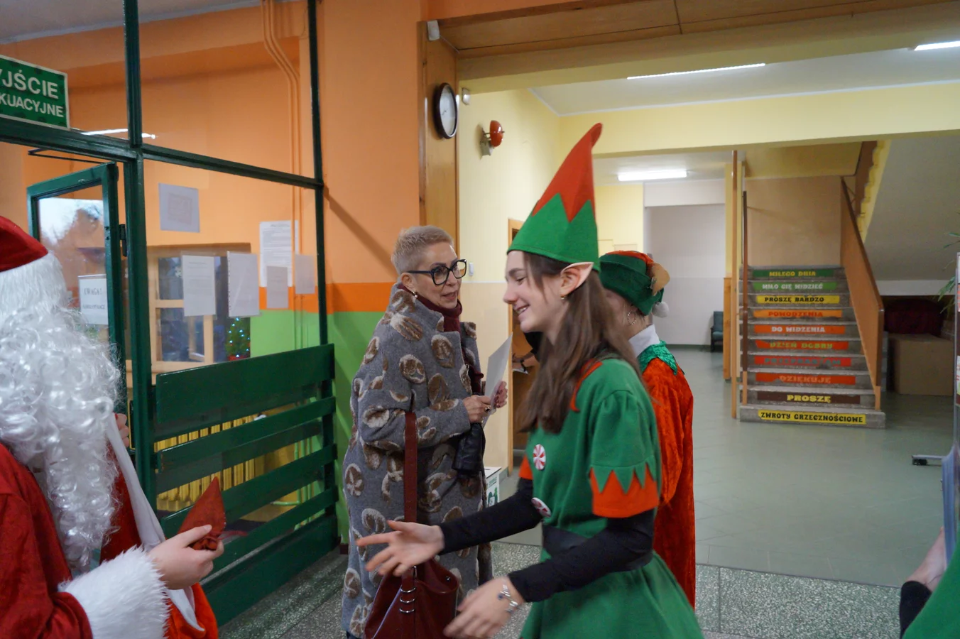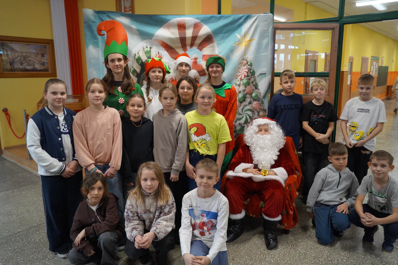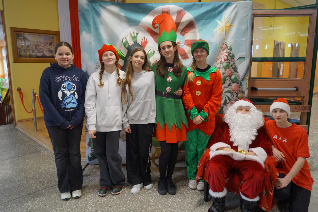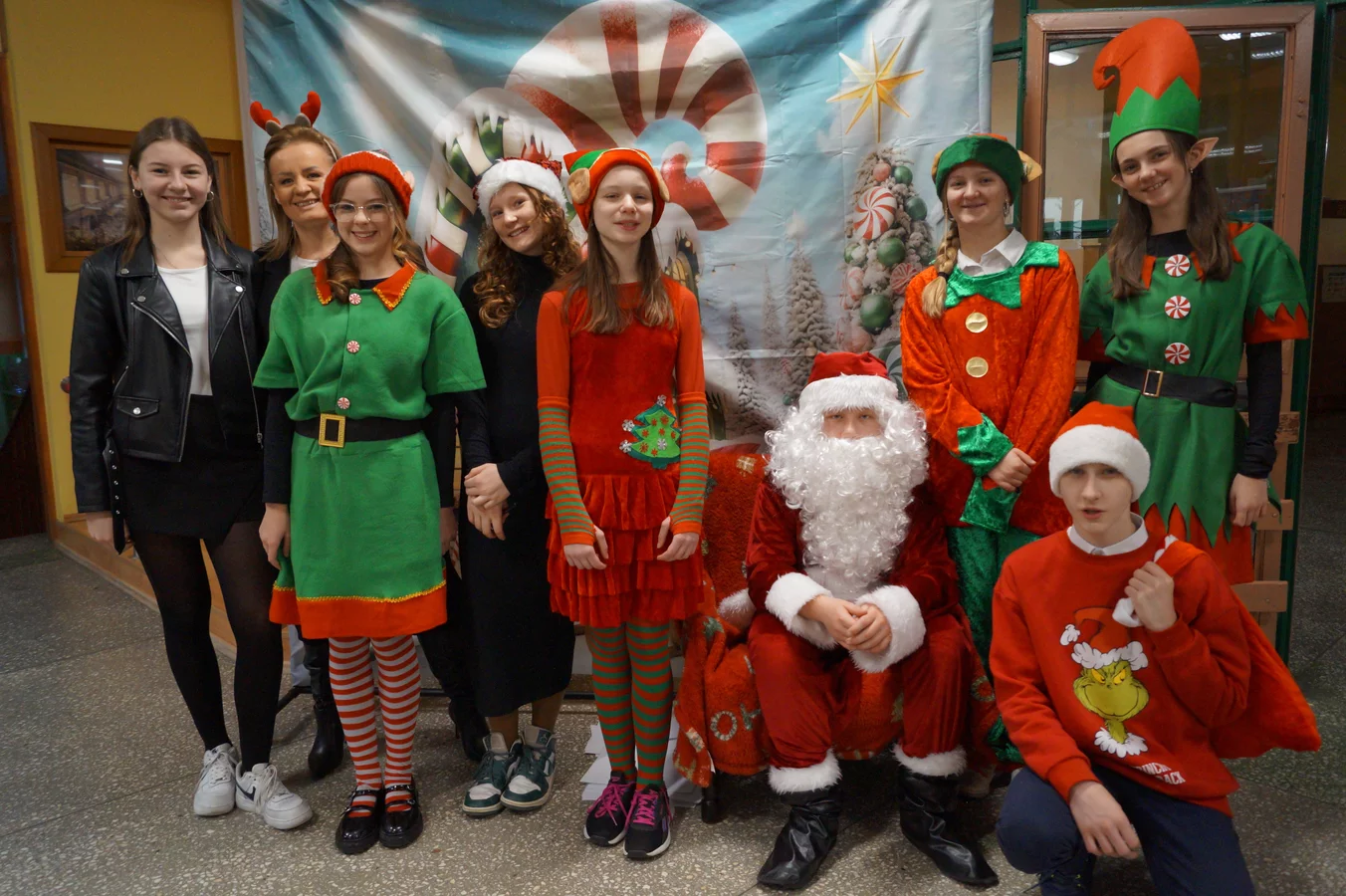 Z kolędami w tle, jeszcze przed wejściem do szkoły, witali nas przedstawiciele SU - świąteczne elfy oraz sam Mikołaj. Każdy, kto przekraczał próg szkoły, mógł poczuć wyjątkowy klimat i uśmiechnąć się na myśl o miłej niespodziance.